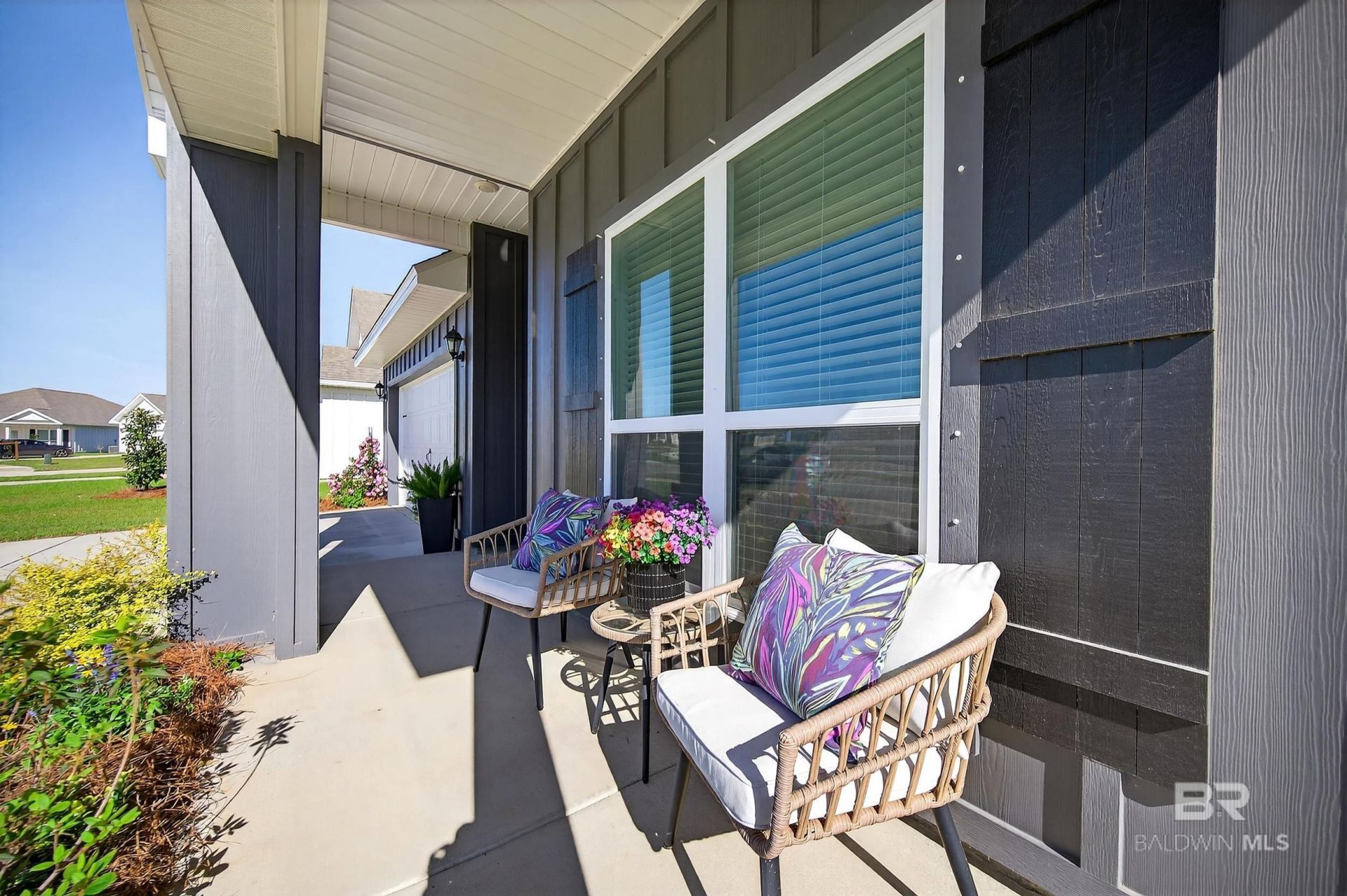 Tucked away on a quiet cul-de-sac, this beautifully maintained Rhett floorplan is nestled on a quiet cul-de-sac street offering privacy with a fenced backyard featuring a gate, bordering a peaceful farm, with no rear neighbors. From the moment you arrive, the curb appeal stands out with a vibrant, thoughtfully designed front flower bed bursting with colorful blooms, creating a warm and inviting first impression. The covered front patio and charming 1/3 glass front door allow natural light to pour into the foyer, setting the tone for the rest of the home. Inside, you'll find a spacious, well-designed layout highlighted by elegant double tray ceilings in the living room and a single tray ceiling in the primary suite. Updated lighting fixtures throughout add a fresh, modern feel, while the primary bedroom features a stunning accent wall that brings both style and personality to the space. Out back, enjoy a beautifully landscaped garden space with raised beds and arched trellises. A diverse ?cut and come again' flower garden. A few veggies have also already been planted?perfect for those who love to spend time outdoors or enjoy homegrown touches.Located in the Fairhope Falls neighborhood offering two pools, two playgrounds and a workout area, this home combines charm, comfort, and community amenities in one exceptional package. Buyer to verify all information during due diligence.