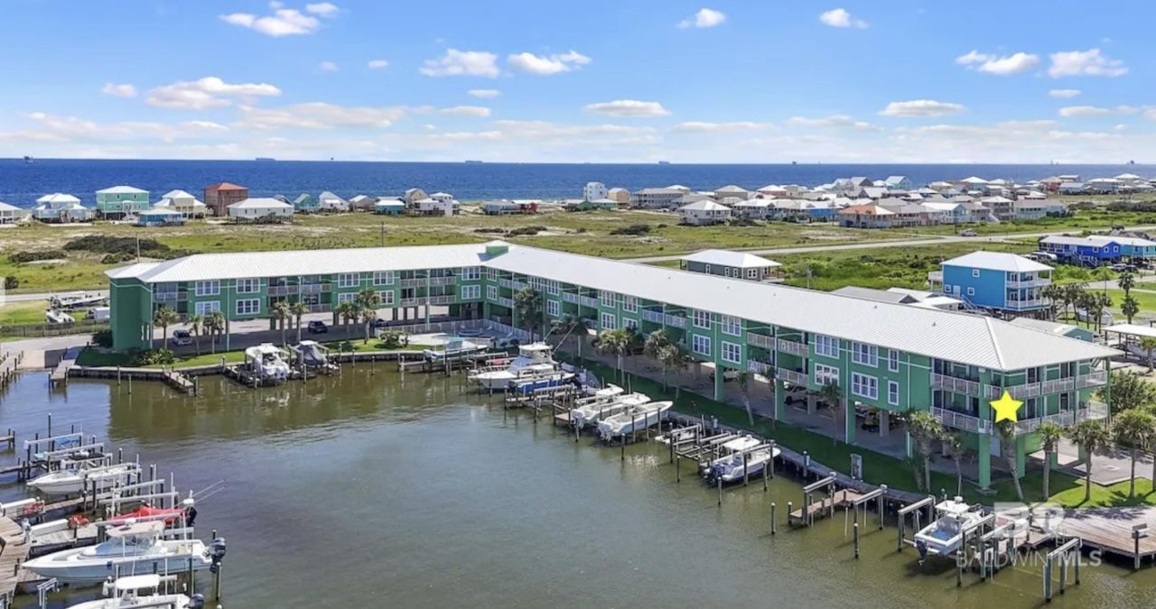 Rare end-unit opportunity at Navy Cove Harbor! Known as Hooked Bliss, this bay front retreat on the Fort Morgan Peninsula offers sweeping sunset views over Mobile Bay, exceptional boating amenities, and the ideal relaxed coastal lifestyle. The 3-bedroom, 2-bath layout features an open living, dining, and kitchen area designed for easy entertaining, along with a spacious primary suite with king bed and private ensuite bath. Two guest bedrooms each offer queen beds, and a sleeper sofa provides added flexibility for guests. Step outside to an oversized private, L-shaped balcony overlooking the bay?perfect for morning coffee, outdoor dining, or taking in the view at sunset. This rare end unit also includes access to a private fishing dock, a dedicated boat slip with 14,000-lb capacity for up to a 36' boat, and a jet ski port, making it a standout for boating and fishing enthusiasts. Navy Cove Harbor amenities include two pools, a hot tub, gated entry, covered parking, additional open-air parking, and beach access just a short walk or golf card ride away. Located approximately 16 miles west of Gulf Shores on scenic Highway 180, the property is also just minutes from the Fort Morgan ferry, Kiva Dunes, The Peninsula, local dining, and the natural beauty of the Alabama Gulf Coast. Whether you're searching for a personal waterfront escape, second home, or investment property, this rare bay front end unit offers comfort, views, and resort-style amenities in one unforgettable setting. Buyer to verify all information during due diligence.