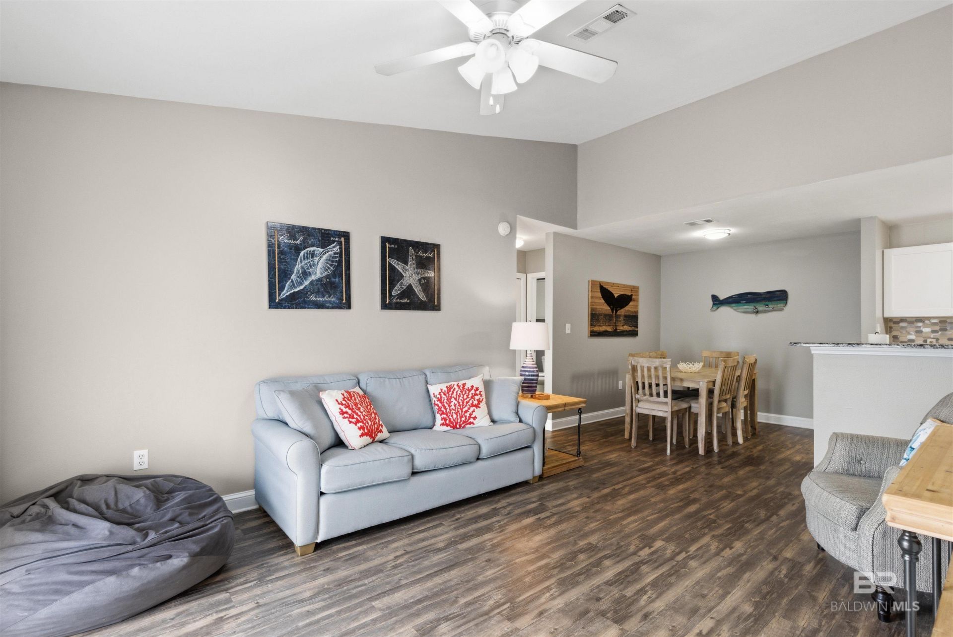 Affordable and Adorable!! Completely move in ready this fully updated, being sold fully furnished, 2 Bed 2 Bath 1017 sq ft condo in Colony Club is located in Gulf Shores, AL offering vaulted ceilings, open layout, granite countertops throughout, white cabinetry, decorative backsplash and stainless-steel appliances in kitchen. Primary bedroom with ensuite. Enjoy your large, covered patio with storage and all the perks of a gated community with pool, hot tub, tennis/pickleball court, BBQ areas, clubhouse and on-site boat and trailer storage available. With no rental restrictions and close proximity to Gulf Shores beaches, shopping, dining, and entertainment this is a perfect opportunity for a primary home, vacation escape, or investment property. This condo checks all the boxes for vacation, lifestyle, and value. Call today for a private showing. Buyer to verify all information during due diligence.