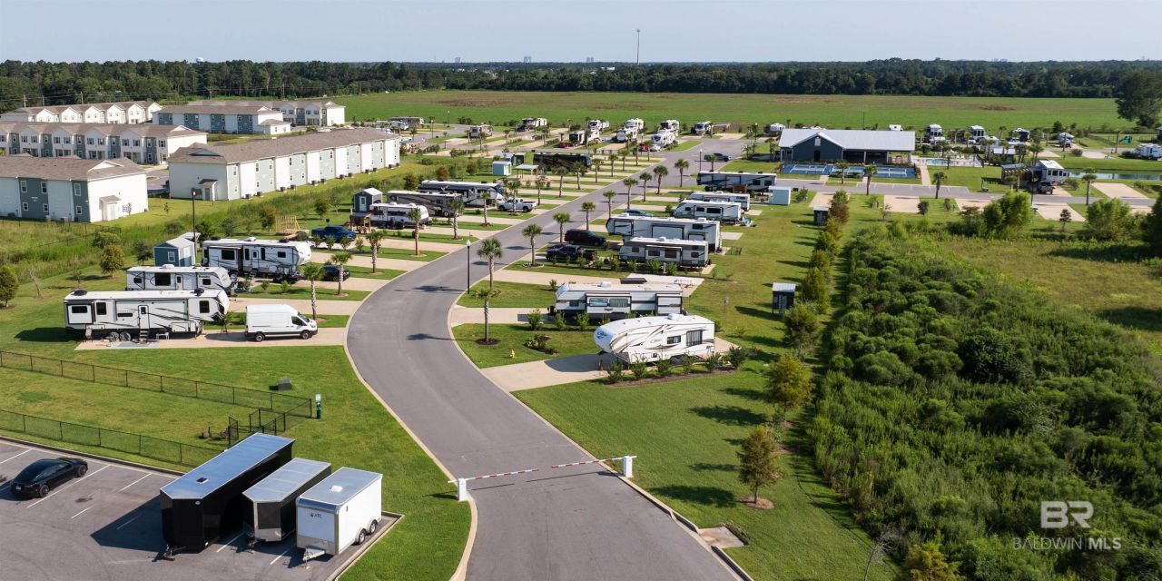 Lot 28 is located within the Grand Riviera RV Resort in Foley, Alabama. This lot offers the opportunity to enjoy resort living with access to a wide range of on-site amenities and nearby entertainments. Grand Riviera RV Resort is located on County Road 20 (Miflin Road), next to some of the area's most popular attractions, including Tanger Outlets, OWA Amusement Park, and Tropical Falls Indoor Water Park. The Alabama Gulf Coast public beaches are less than 10 miles away. Additional nearby attractions include the Gulf Coast Zoo, Gulf State Park, The Wharf Marina, and a variety of restaurants, shopping, and year-round events. Resort amenities include a welcome/rental office, clubhouse, spacious covered pavilion, three bathhouses, two laundry facilities, three swimming pools, playground, soccer field, three pickleball courts, dog park, daily boat parking, high-speed WiFi, and landscaped common areas. Vacation Rentals Allowed. The resort has a designated on-site rental company available, charging a 20% management fee, providing flexibility for personal use or rental purposes. HOA dues are $235 per month and cover association management, landscaping, pool maintenance, pest and termite services, common area insurance, custodial services for common areas, and utilities including cable/internet, waste collection, water, and sewer. Each lot has an individual electricity meter. Buyer to verify all information during due diligence.