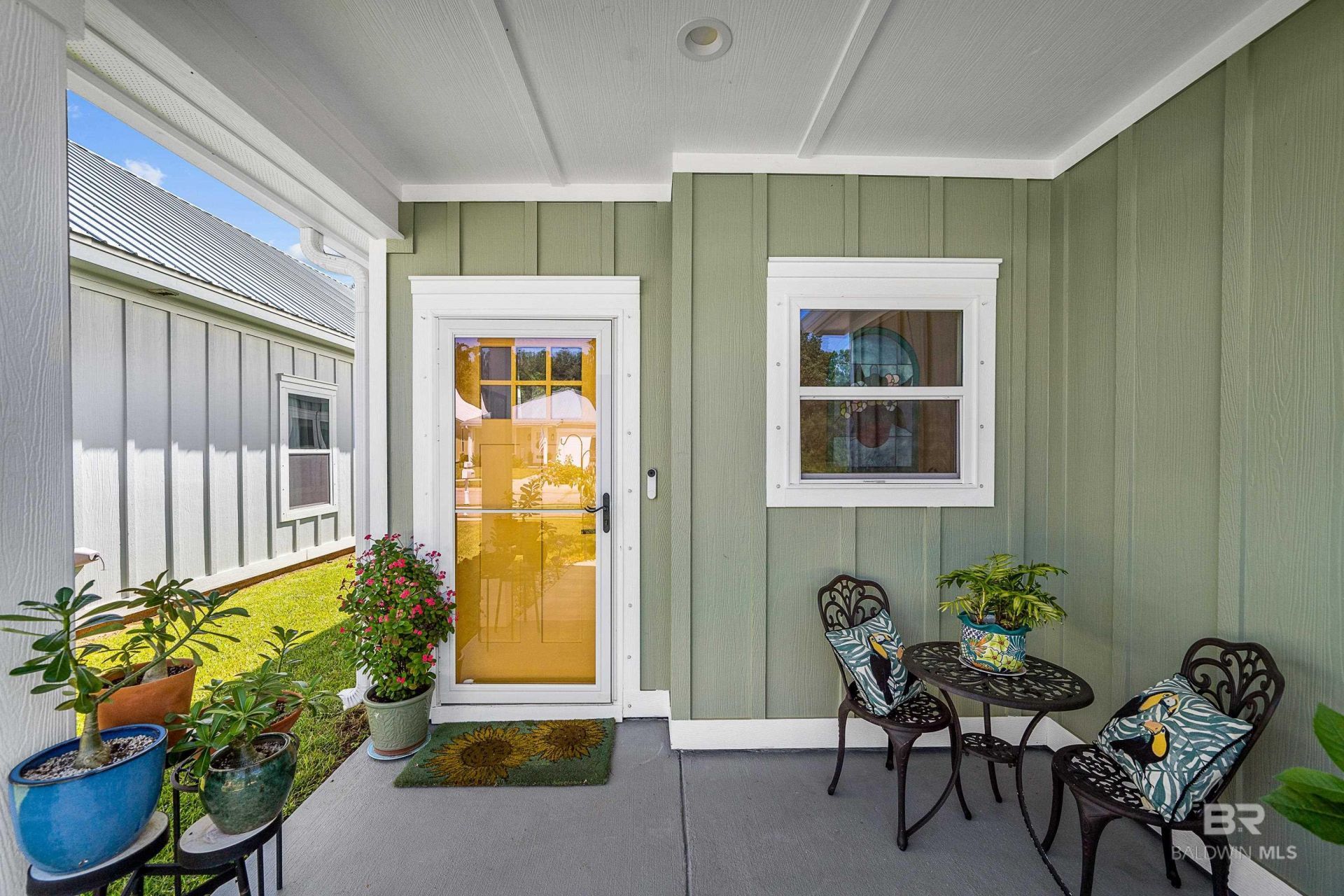 Discover modern coastal living and income potential at 8076 Carmel Circle in Foley, Alabama, located in the desirable Bella Vista community. Built in 2022, this 3 bedroom, 3 bathroom home features Fortified Gold construction and a metal roof, offering enhanced durability, energy efficiency, and potential insurance savings?highly sought-after features for Gulf Coast buyers.This open concept, split-bedroom floor plan is designed for both privacy and functionality, with a seamless flow between the living, dining, and kitchen areas?ideal for entertaining or everyday living. The interior showcases luxury finishes throughout, including a statement wood beam ceiling, quartz countertops, custom closet systems, and luxury vinyl plank (LVP) flooring throughout?no carpet.The kitchen is a standout with quartz counters, a cultured granite farmhouse sink, and soft-close cabinetry, blending style and convenience for today's buyer. Each bedroom offers access to its own bathroom, making this layout especially appealing for families, guests, or vacation rental use.Outdoor living is just as inviting, featuring a screened-in porch, extended patio, and added gutters. The backyard setting offers a peaceful, shaded atmosphere with mature trees and access to a community walking path, creating a private and relaxing retreat.Bella Vista is a small, quiet neighborhood of custom homes in Foley, AL, conveniently located just off Highway 59. Enjoy quick access to shopping, dining, and entertainment, while being only 15 minutes from the white sand beaches of Gulf Shores, Alabama.Short-term rentals are allowed, making this property an excellent opportunity for a vacation home, Airbnb investment, or income-producing rental property along the Alabama Gulf Coast.Whether you're searching for a primary residence, second home near Gulf Shores, or turnkey investment property, this home offers the perfect combination of location, construction quality, and modern design. Buyer to verify all information dur